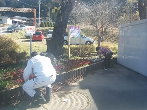 駐車場に花壇を作り、芝桜とムスカリを植えました。